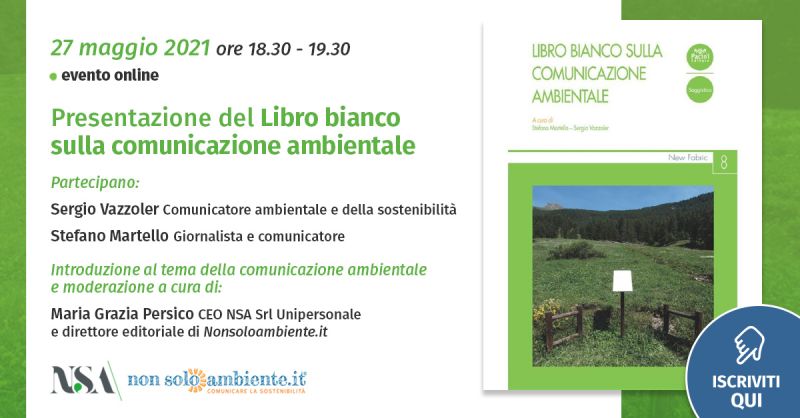 Giovedì 27 maggio, alle 18.30, si terrà in diretta streaming la presentazione del Libro bianco sulla comunicazione ambientale (disponibile qui) organizzata da Nonsoloambiente.